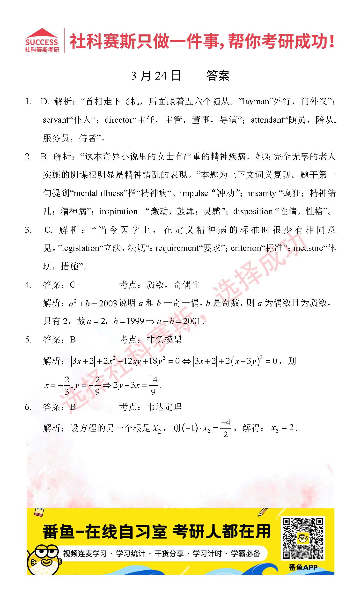 首頁> 管理類聯(lián)考每日一練 > 2022管理類聯(lián)考3月24日每日一練及答案