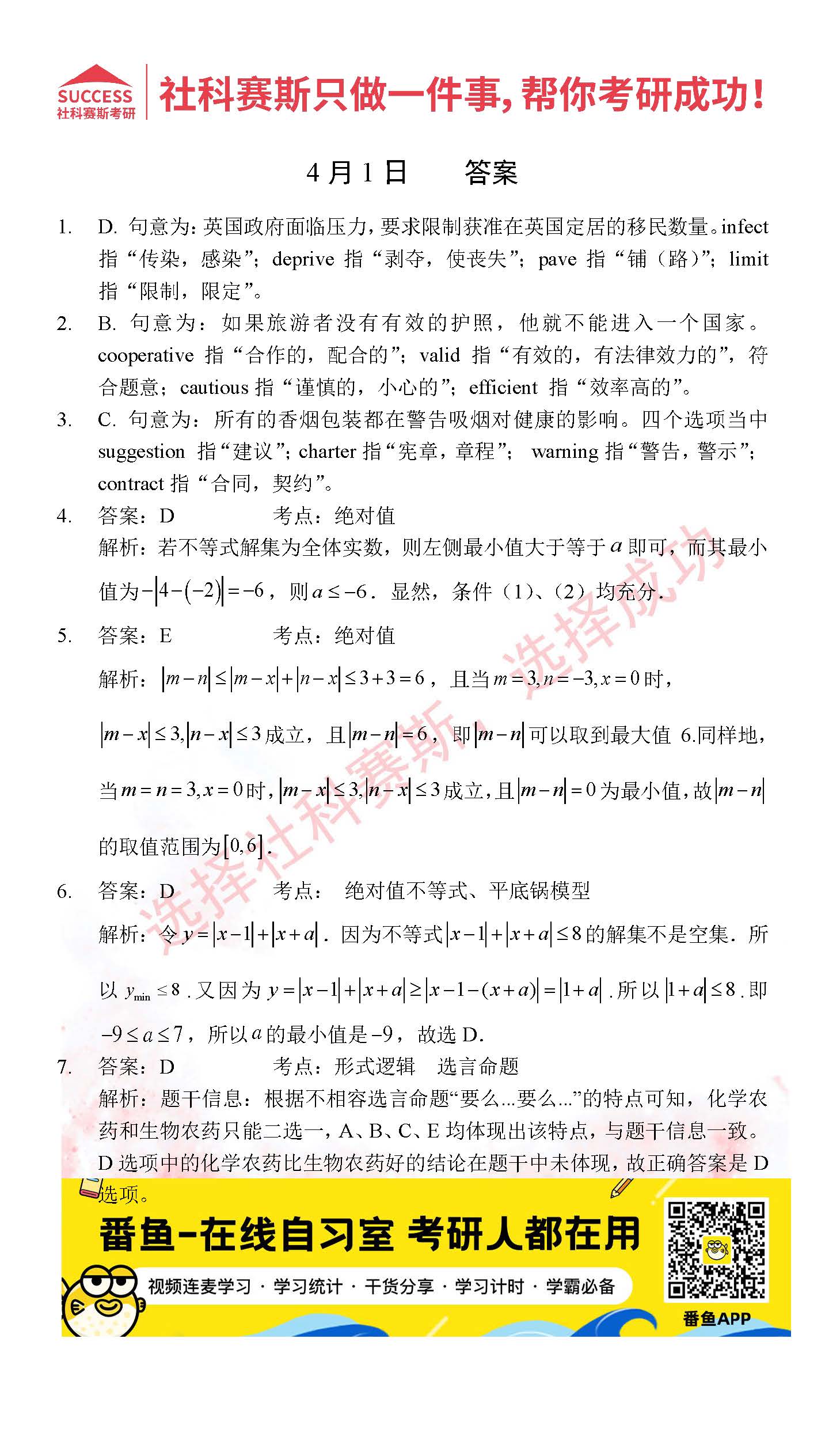 導(dǎo)讀:考研是一場持久戰(zhàn),保持良好的學習習慣,是能確保復(fù)習高效的關(guān)鍵。今天社科賽斯MBA備考網(wǎng)小編整理了“2022管理類聯(lián)考4月1日每日一練及答案”的內(nèi)容,希望能對廣大考生有所幫助。