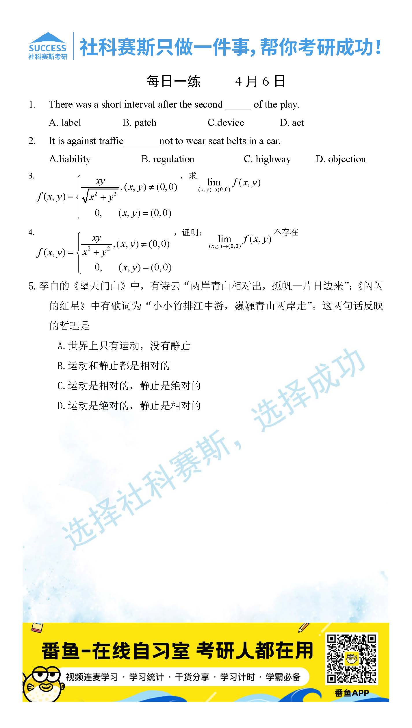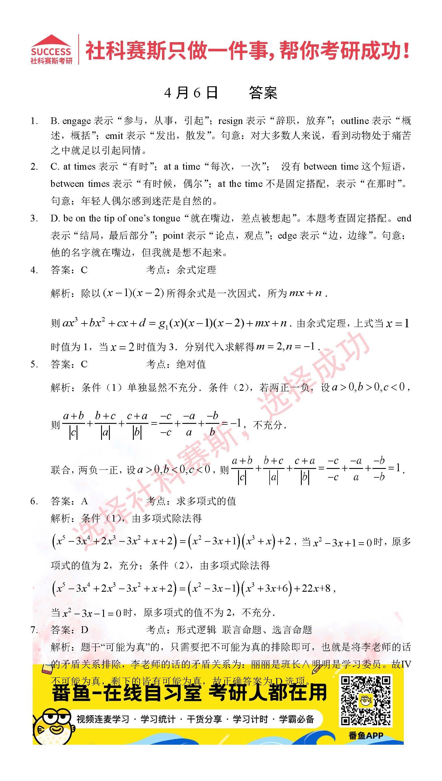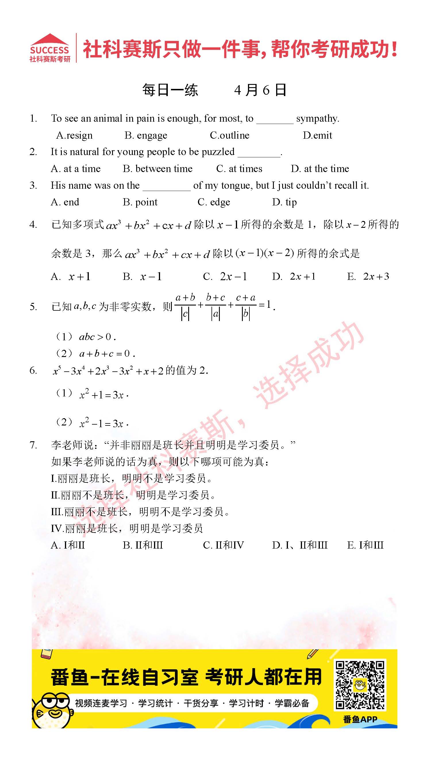 導讀:考研是一場持久戰,保持良好的學習習慣,是能確保復習高效的關鍵。今天社科賽斯MBA備考網小編整理了“2022管理類聯考4月6日每日一練及答案”的內容,希望能對廣大考生有所幫助。