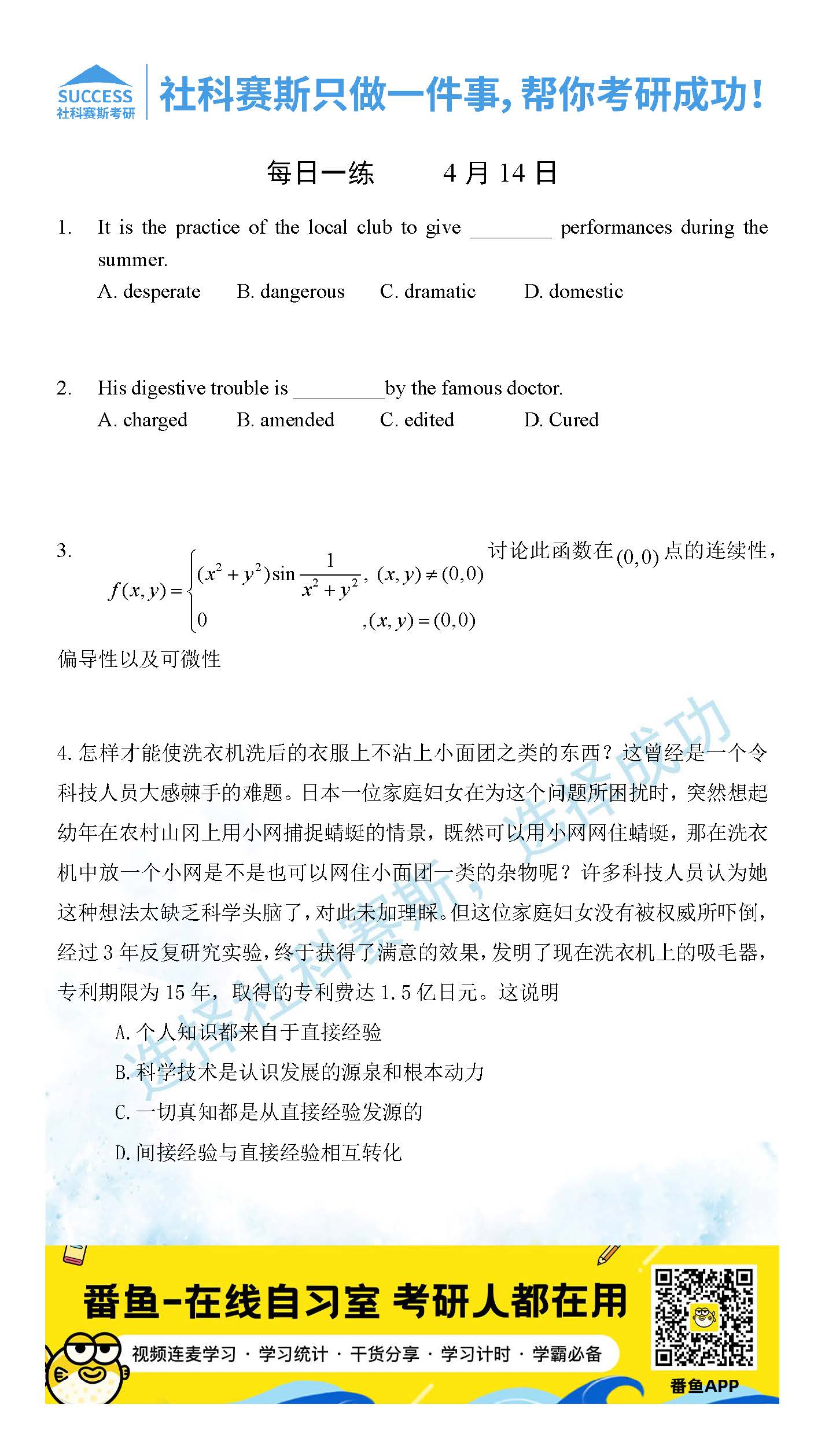 導讀:考研是一場持久戰,保持良好的學習習慣,是能確保復習高效的關鍵。今天社科賽斯MBA備考網小編整理了“2022管理類聯考4月14日每日一練及答案”的內容,希望能對廣大考生有所幫助。
