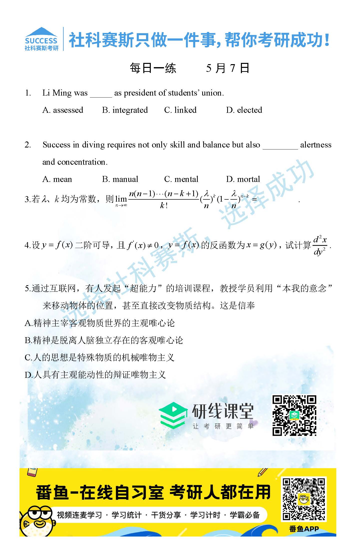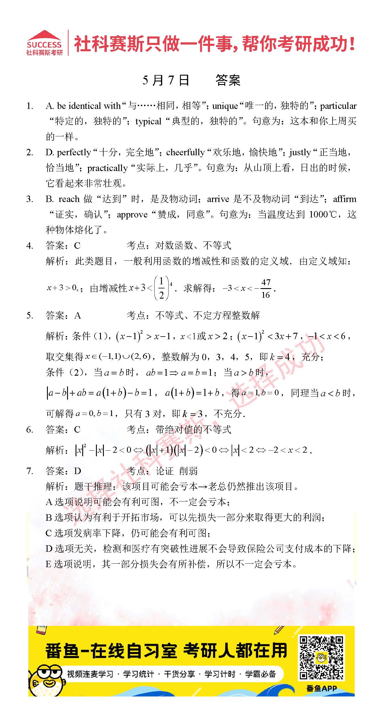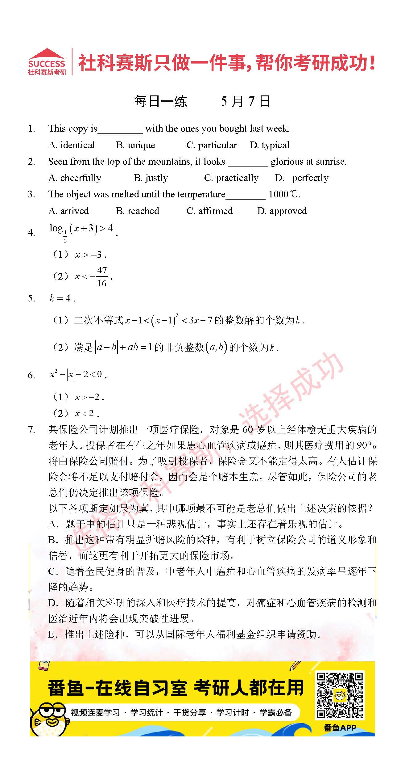 導讀:考研是一場持久戰,保持良好的學習習慣,是能確保復習高效的關鍵。今天社科賽斯MBA備考網小編整理了“2022管理類聯考5月7日每日一練及答案”的內容,希望能對廣大考生有所幫助。