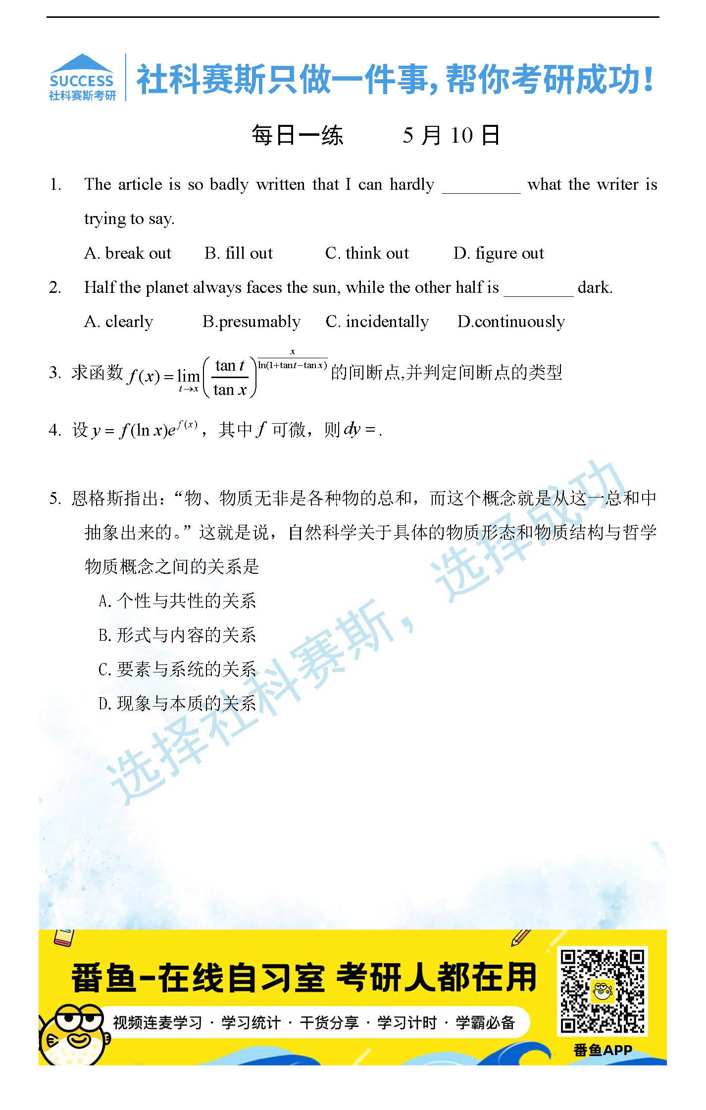 導(dǎo)讀:考研是一場持久戰(zhàn),保持良好的學(xué)習(xí)習(xí)慣,是能確保復(fù)習(xí)高效的關(guān)鍵。今天社科賽斯MBA備考網(wǎng)小編整理了“2022管理類聯(lián)考5月10日每日一練及答案”的內(nèi)容,希望能對廣大考生有所幫助。