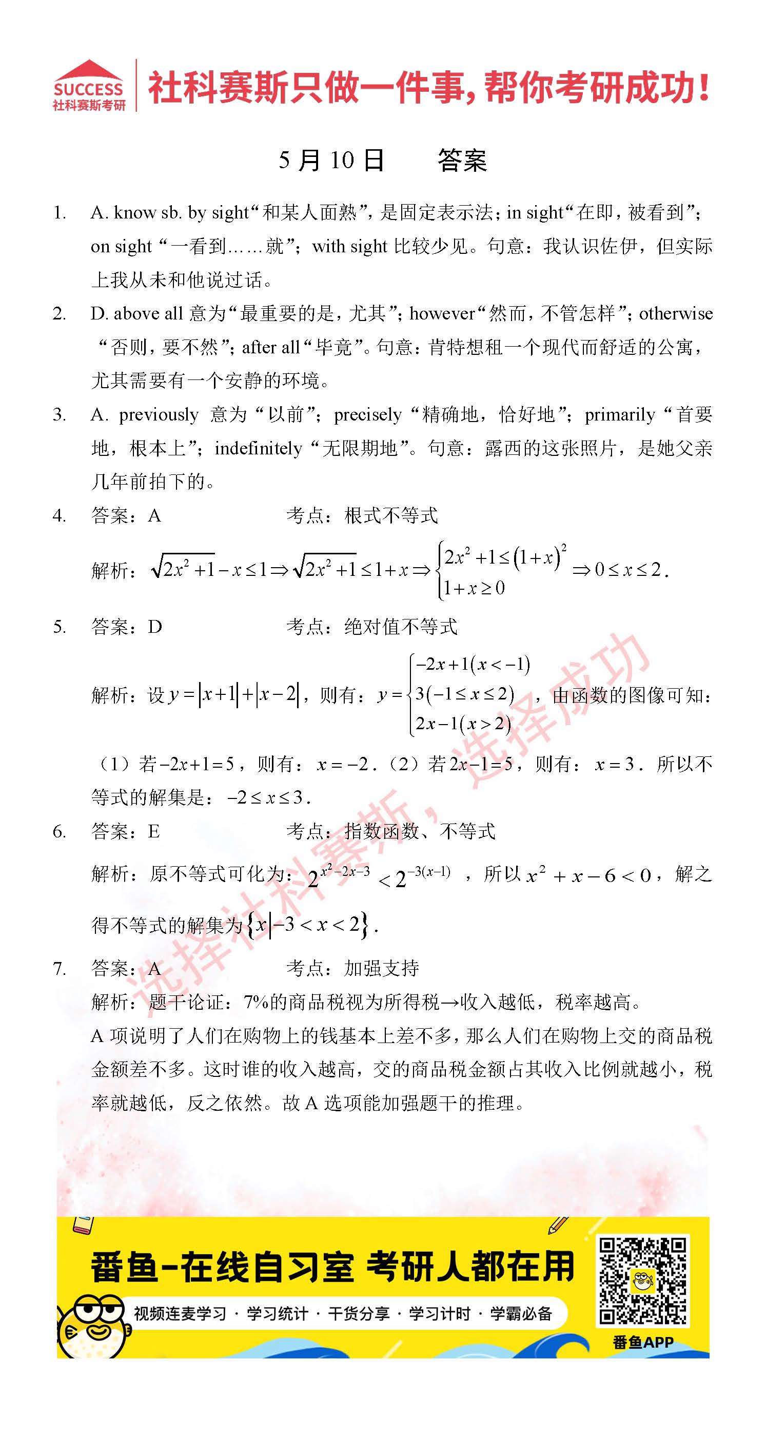 的全部內(nèi)容,希望各位考生堅(jiān)持利用起來,更多每日一練內(nèi)容請持續(xù)關(guān)注MBA備考網(wǎng)管理類聯(lián)考每日一練。