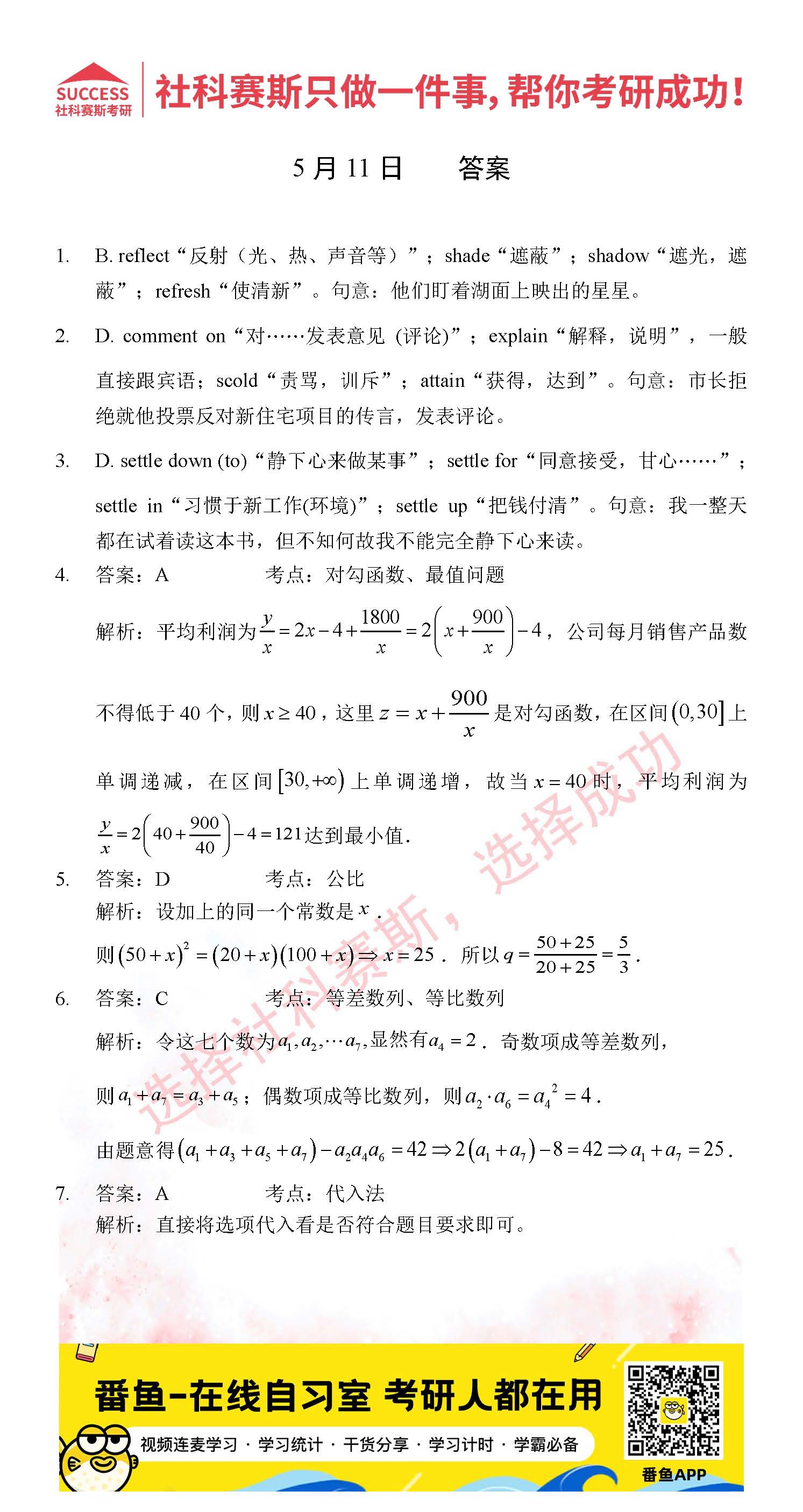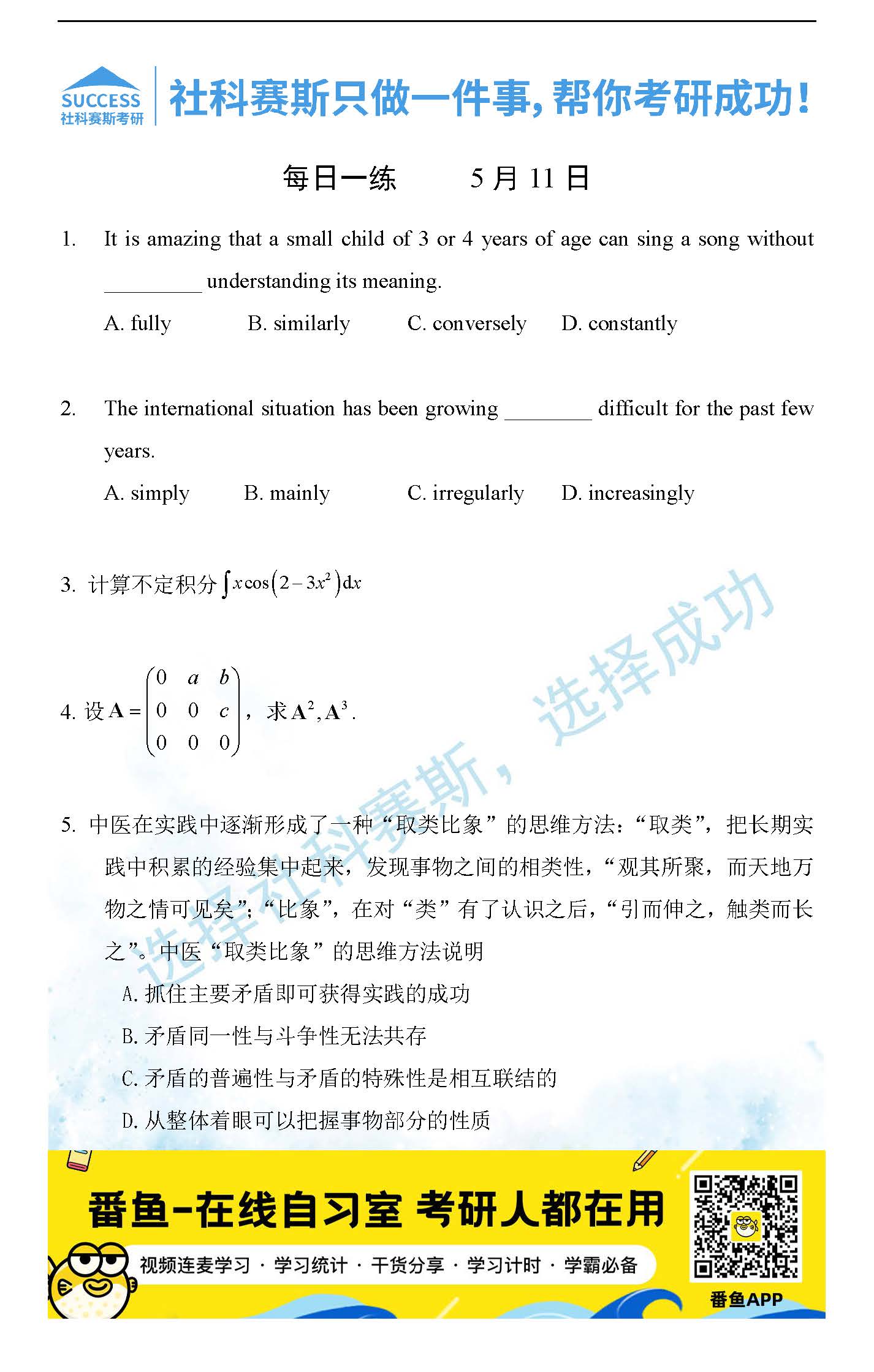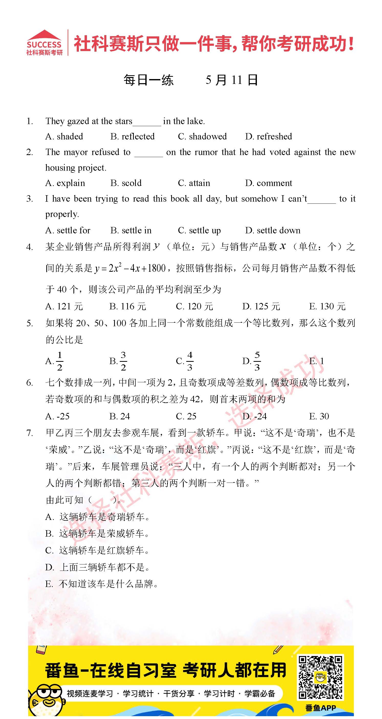 導讀:考研是一場持久戰,保持良好的學習習慣,是能確保復習高效的關鍵。今天社科賽斯MBA備考網小編整理了“2022管理類聯考5月11日每日一練及答案”的內容,希望能對廣大考生有所幫助。