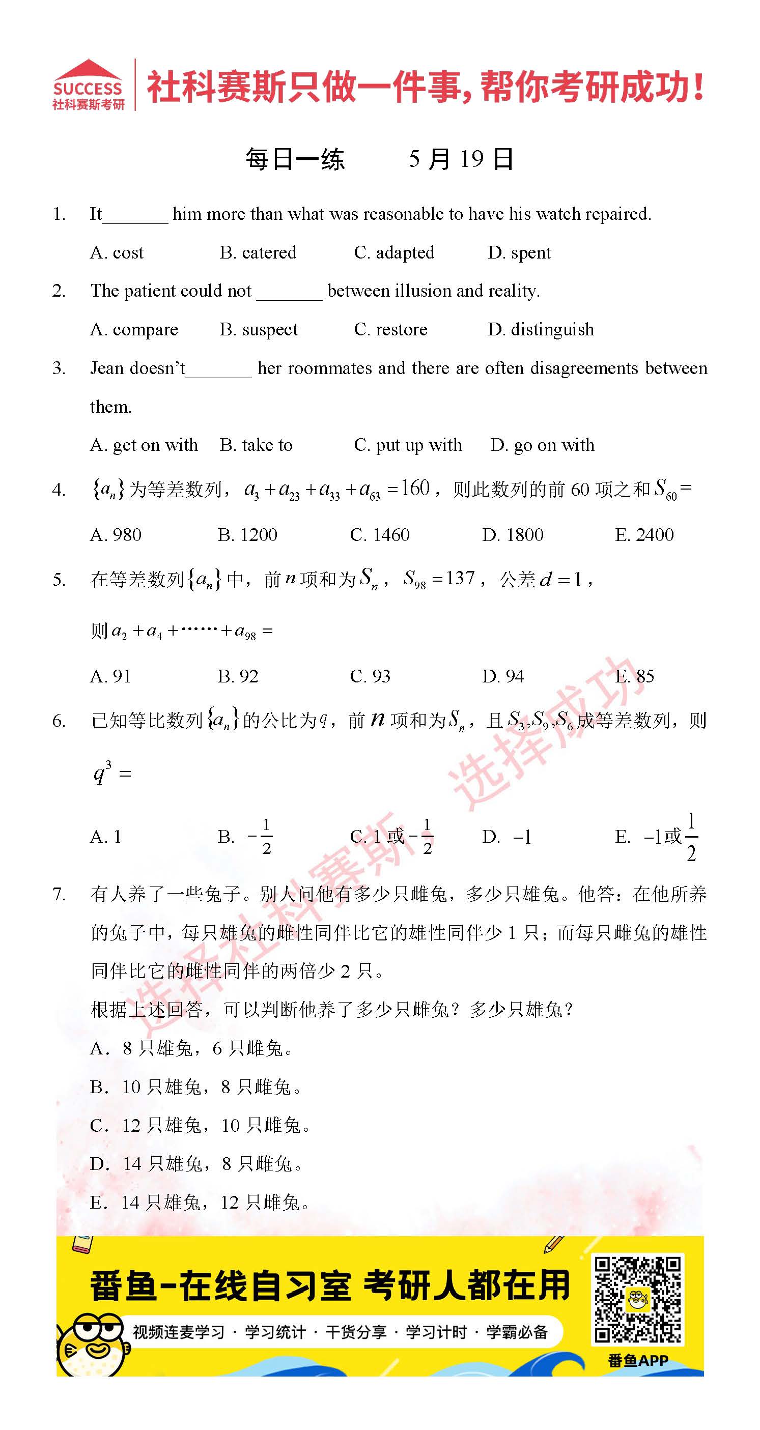 導讀:考研是一場持久戰,保持良好的學習習慣,是能確保復習高效的關鍵。今天社科賽斯MBA備考網小編整理了“2022管理類聯考5月19日每日一練及答案”的內容,希望能對廣大考生有所幫助。