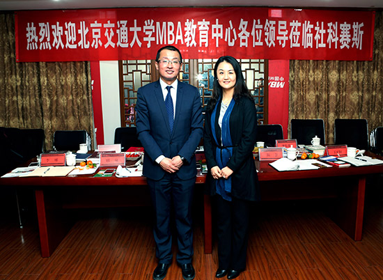 “百年交大,百年經管”――橫跨三個世紀的北京交通大學作為中國一所專門培養管理人才的高校,MBA項目在北交大經管學院落腳,二十多年來取得了重大發展。2016年1月6日,明媚的陽光照散了久日的霧霾,在這樣一個美好的天氣中,社科賽斯(SUCCESS)教育集團北京總部迎來了尊貴的客人――北京交通大學MBA教育工作者,分別是北京交通大學MBA教育中心主任左莉副教授,MBA中心苗慧老師、李娜老師、邢敏老師、丁正陽老師。集團領導甄誠董事長、李發進校長,中國MBA教育網張晶波副總裁等核心領導熱情接待了到訪嘉賓。