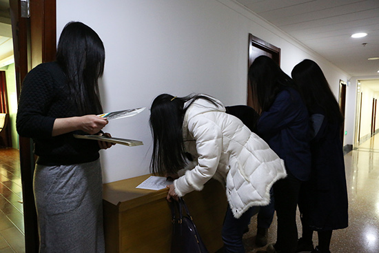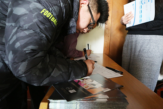 在調(diào)劑政策發(fā)布會(huì)開始之前,考生們紛紛簽到入場,他們在簽到表上填寫了各自的報(bào)考院校、成績和調(diào)劑意向。未等發(fā)布會(huì)正式開始,會(huì)場已是座無虛席,比肩接踵。據(jù)統(tǒng)計(jì),今天參加調(diào)劑政策發(fā)布會(huì)的考生達(dá)130人。