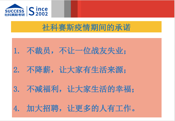疫情當(dāng)前,社科賽斯不負(fù)學(xué)員期望,積極開展線上直播課程,助力學(xué)員考研成功;不讓學(xué)員擔(dān)心,第一時(shí)間致信學(xué)員,表明不拖延、不縮水的信心。服務(wù)學(xué)員,傾盡全力,保證線上上課質(zhì)量不打折扣,其中身為黨員的老師們,義無反顧地選擇返回崗位,立足本職,做起了疫情下的“逆行者”,奮斗在一線,傾力付出,做考研學(xué)子的堅(jiān)強(qiáng)后盾,努力幫助學(xué)員實(shí)現(xiàn)的名校夢。