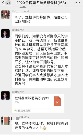 兩個多小時的直播分享,獲得學員的一致好評。至此,《MBA——職場制勝之道》專題報告圓滿結束。