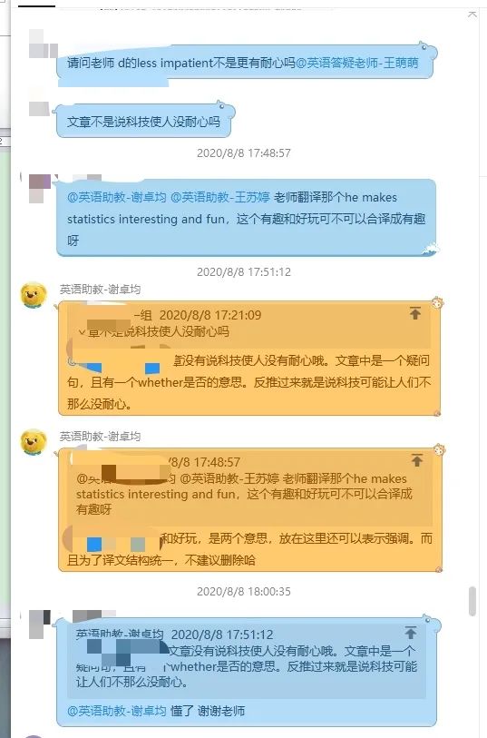 自習時間,助教老師在線答疑,有問題隨時提問,不僅能解決自己的問題,而且可以看到每個人的共性問題。