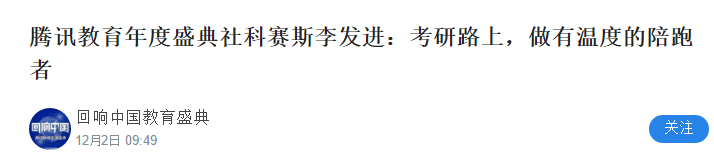 原文標題:騰訊教育年度盛典社科賽斯李發進:考研路上,做有溫度的陪跑者