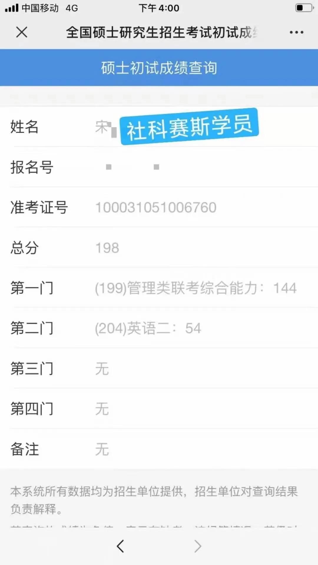 上述是部分學員發來的成績查詢結果,從圖可見,他們的成績很優秀,每一個分數背后,都有社科賽斯人的努力與付出,但更多的,是學員對考研的堅持,對自己改變命運信念的堅定!