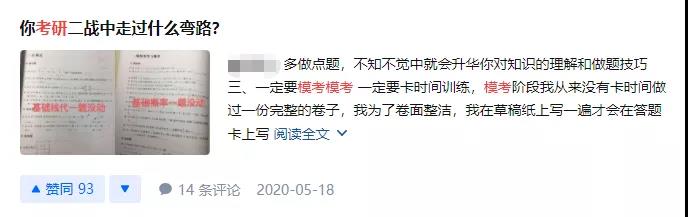 不少過來人在考研經(jīng)驗(yàn)心得的帖子里也紛紛表示一定要進(jìn)行模考!!!