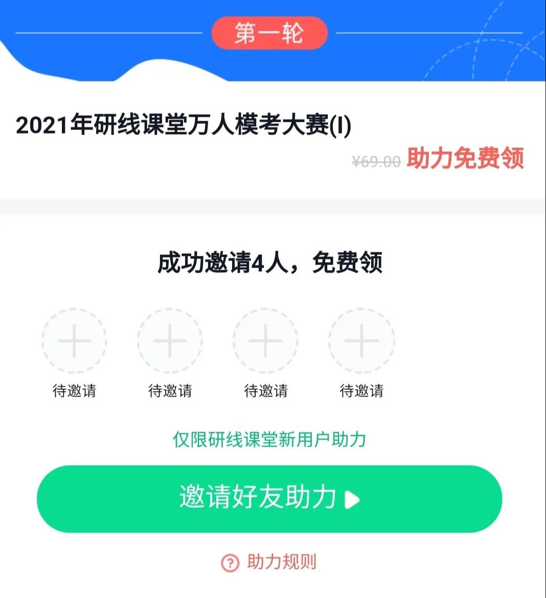 注意!注意!只要成功邀請4個研線課堂新用戶,將能免費(fèi)獲得一輪模考參與機(jī)會!