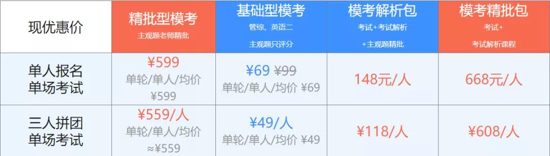 同時還推出了模考解析包、模考精批包組合優(yōu)惠套餐,模考解析包=考試+考試解析+主觀題精批,模考精批包=考試+考試解析課程。想要精批和解析的同學(xué)千萬別錯過!
