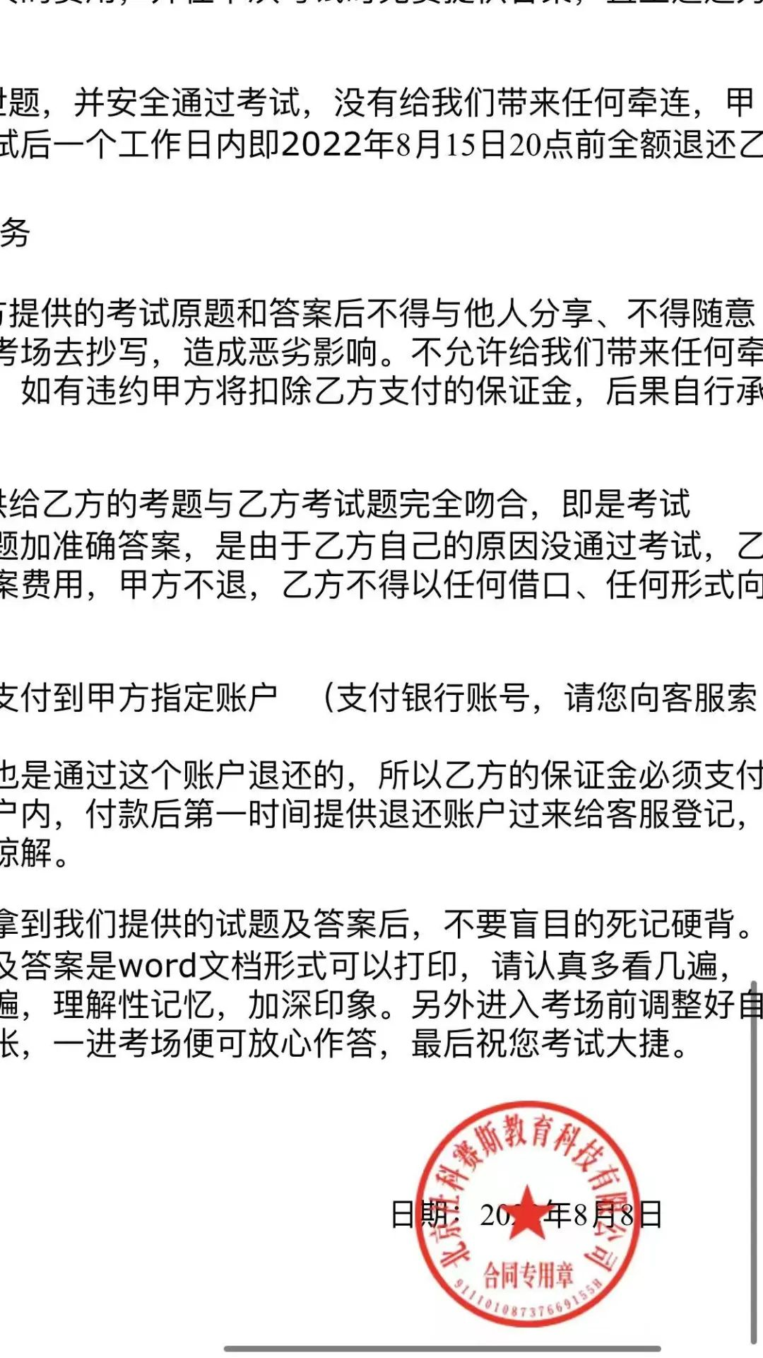 二、本公司未授權(quán)除了全資控股子公司外的任何主體或個(gè)人以“北京社科賽斯教育科技有限公司”名義對(duì)外開展業(yè)務(wù)活動(dòng)。如發(fā)現(xiàn)有其他市場(chǎng)主體以及個(gè)人以我司名義對(duì)外承攬招生業(yè)務(wù)、簽署合同、收取款項(xiàng),請(qǐng)廣大學(xué)子注意甄別、提高警惕,避免上當(dāng)受騙;