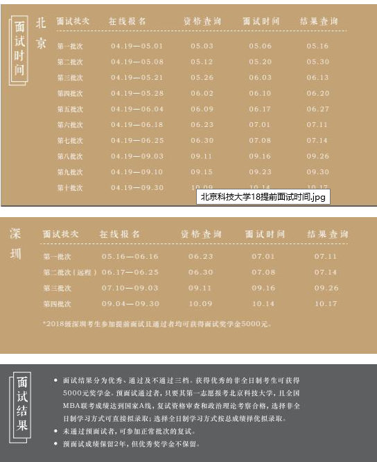 附:北科2018年MBA提前面試時間安排表