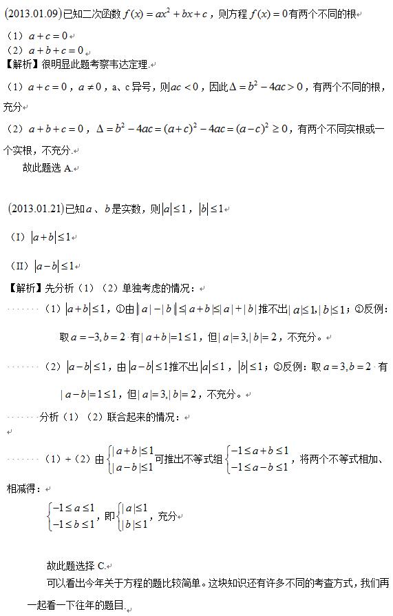 歷年主要考查三個方面:1. 考查計算型的題目主要圍繞方程的根與不等式的解集展開;2. 利用不等式的性質求解最值,尤其應用題里面的最值問題;3. 考查較高層次的應用,比如不定方程與不定不等式(線性規劃問題).