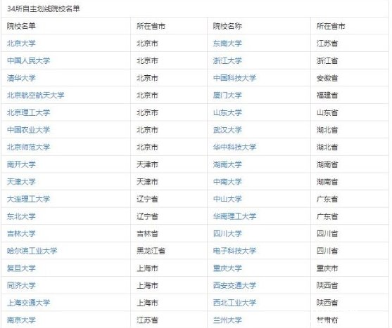 另外,還有34所院校為自主劃線。