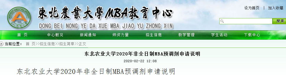 以上是小編整理的“2020考研調劑:東北農業大學非全日制MBA預調劑”的全部內容,更多關于MBA院校調劑信息,盡在社科賽斯MBA備考網,預祝大家考研成功!