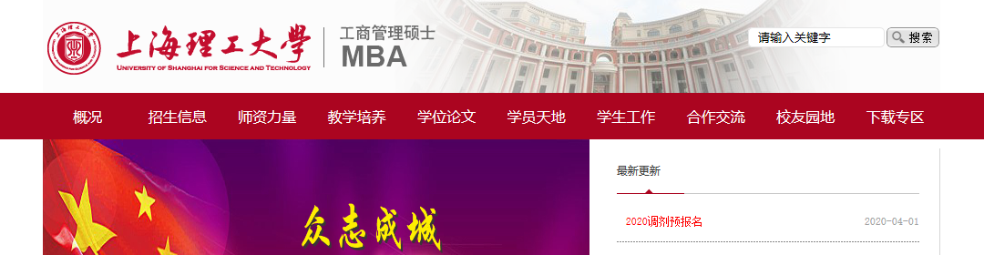 關于2020年上海理工大學MBA、MPA、MEM、MPAcc項目接收全國調劑的通知