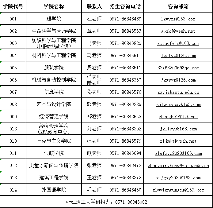 浙江理工大學(xué)各招生學(xué)院咨詢方式