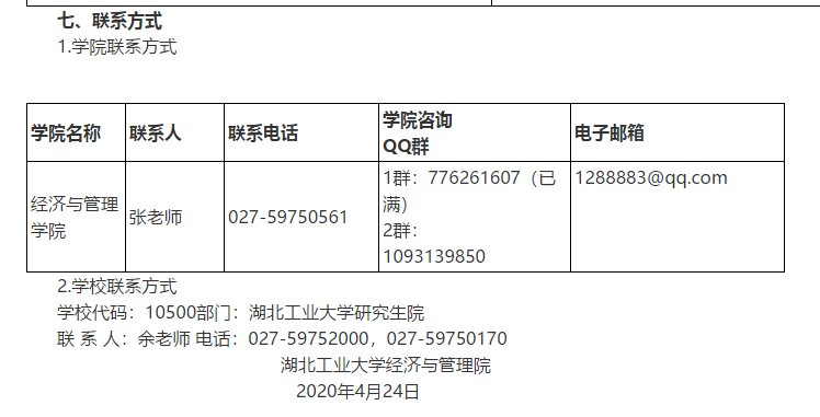以上是小編整理的“MBA接受調劑的院校 |湖北工業大學2020年接收MBA調劑的通知”的全部內容,更多關于MBA院校調劑信息,盡在研線網,預祝大家考研成功!