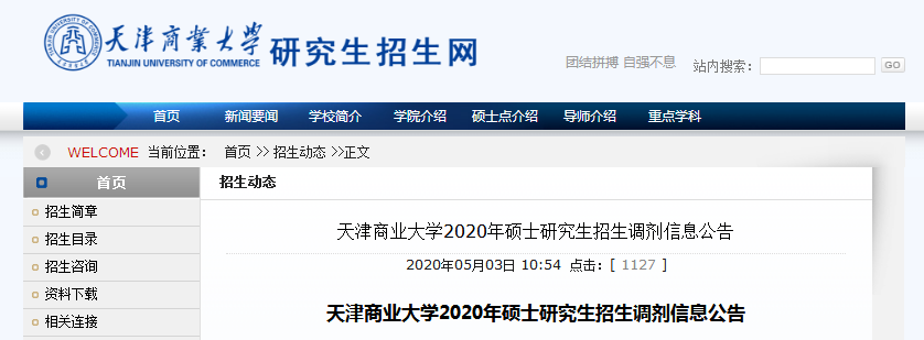 原標題:天津商業(yè)大學(xué)2020年碩士研究生招生調(diào)劑信息公告