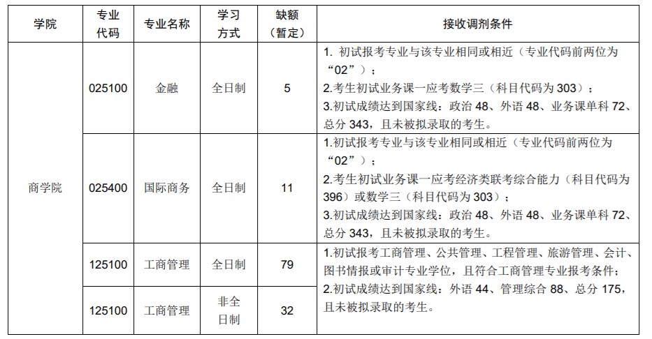 3.除附件中公布的接收調(diào)劑的專業(yè)外,我校將根據(jù)復(fù)試錄取情況,陸續(xù)發(fā)布復(fù)試后需要接收調(diào)劑的其它專業(yè)情況,請(qǐng)關(guān)注我校研究生院及各招生學(xué)院網(wǎng)站通知。