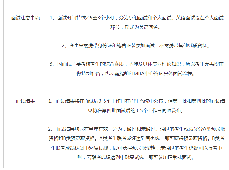 4、關于學習方式:全日制和非全日制的選擇:考生在提前批申請材料中,必須選擇學習方式,且必須與通過中國研究生招生信息網(簡稱研招網,教育部指定網站)報名時(一般在10月)選擇的學習方式一致。即,在提前批選擇了全日制,在研招網報名時也必須選擇全日制,非全日制同理。如果不一致,已經取得的A類預錄取資格降為B類預錄取資格;已經取得的B類預錄取資格降為無提前批面試成績,只能在聯考成績達到中財MBA復試分數線后,參加正常批復試。