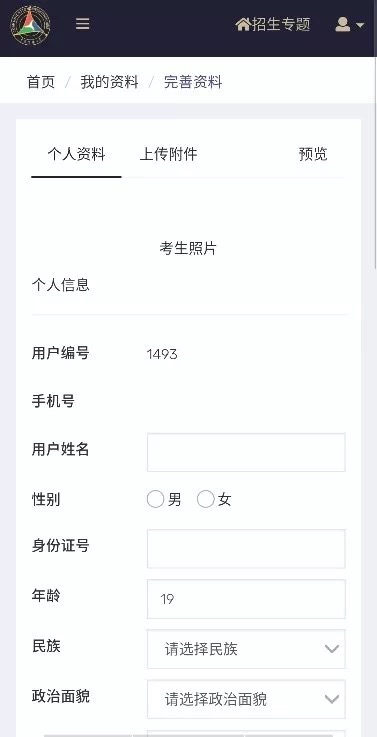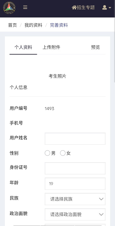 第三步:完善資料:登錄系統后,點擊“修改”按鈕完善資料,并上傳附件,保存信息。