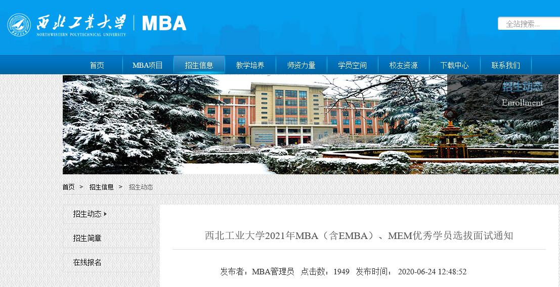 1. 2021年西北工業(yè)大學(xué)MBA(含EMBA)、MEM繼續(xù)實(shí)行優(yōu)秀學(xué)員選拔面試,優(yōu)秀考生可報(bào)名參加優(yōu)秀學(xué)員選拔面試。