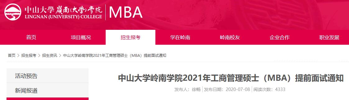 3、具體申請流程請參考:中山大學嶺南(大學)學院2021年MBA提前面試網站注冊及填寫指引(待更新)