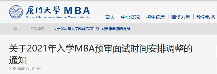 導讀:社科賽斯MBA網小編整理了“2021年MBA提前面試 |2021年廈門大學MBA提面調整通知”的相關內容!有相關報考意愿的同學一定要及時關注!