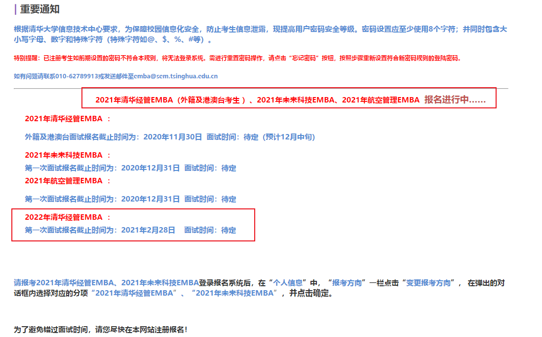 導讀:一年之計在于春!近日不少高等學府也早早公布了2022級EMBA提前批面試時間安排,今天小編整理了近期可以申請的院校批次,供有意向的同學選擇。一下就是“2021級EMBA提前面試:清華經管學院2022年EMBA第一批面試報名截止時間”的內容,快來了解一下!