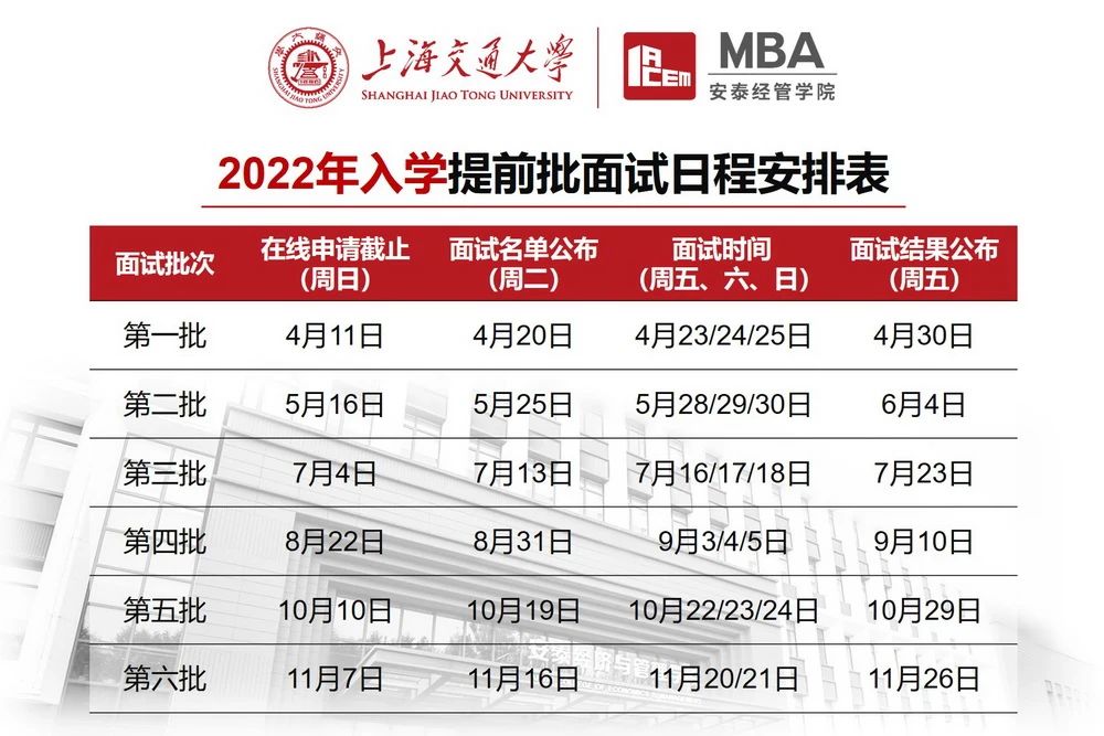 導讀:一年之計在于春!近日不少高等學府也早早公布了2022級MBA相關信息,今天小編整理了“2022MBA提前面試:上海交大安泰MBA2022年提前面試時間”的內容,快來了解一下!