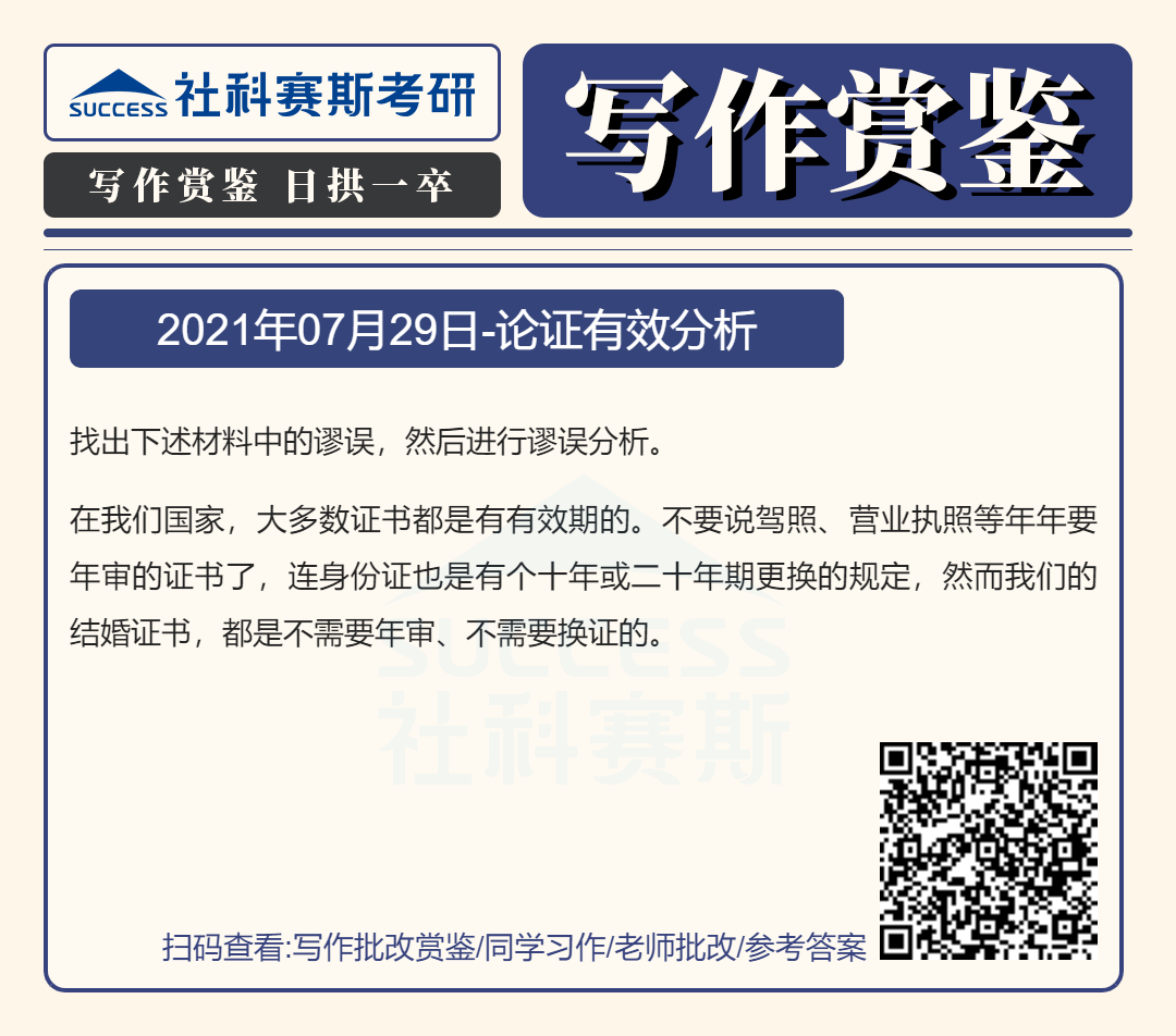 以上就是“2022MBA寫作:2022MBA聯(lián)考寫作批改賞鑒及參考答案(7月29日)”的全部內(nèi)容,更多寫作精選習(xí)題,請持續(xù)關(guān)注社科賽斯MBA備考網(wǎng)!