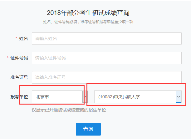 以下是中央民族大學(xué),2018年全國碩士研究生考試成績查詢?nèi)肟?/span>(https://yz.chsi.com.cn/apply/cjcx/)