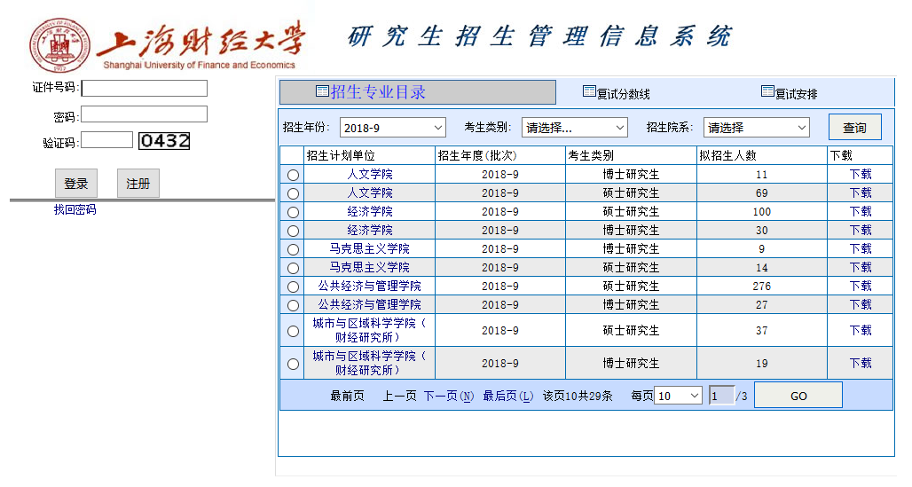 以下是上海財經大學,2018年全國碩士研究生考試成績查詢入口(https://yz.sufe.edu.cn/recruitment/index.do)