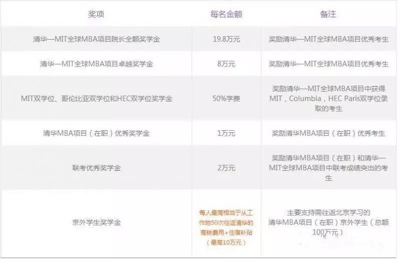 清華經管學院針對申請2018級新生設置總額超過500萬元人民幣的新生獎學金,用于獎勵和資助2018級入學的清華—MIT全球MBA項目和清華MBA項目的新生。京外考生獎學金總額100萬元,獎學金可以覆蓋往返北京學習的外地學生的高鐵費用和提供住宿補貼,讓全國的優秀精英同樣享受到清華MBA項目。
