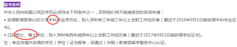 對MBA有所了解的同學都知道,MBA報考條件中有一條是對學歷和畢業年限的要求,具體如下:本科畢業3年及以上,碩士博士畢業2年及以上,專科畢業5年及以上。