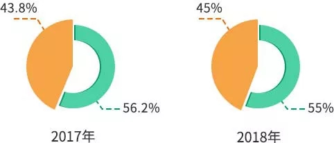 據(jù)教育部統(tǒng)計(jì),2017年共201萬人報(bào)考,其中,應(yīng)屆考生113萬人,往屆考生88萬人;2018年共238萬人報(bào)考,其中,應(yīng)屆考生131萬人,往屆考生107萬人。從數(shù)據(jù)可知,2017年,往屆生考研人數(shù)占全國報(bào)考人數(shù)的43.8%,2018年,往屆生考研人數(shù)占全國報(bào)考人數(shù)的45%,同比上升了1.2%。