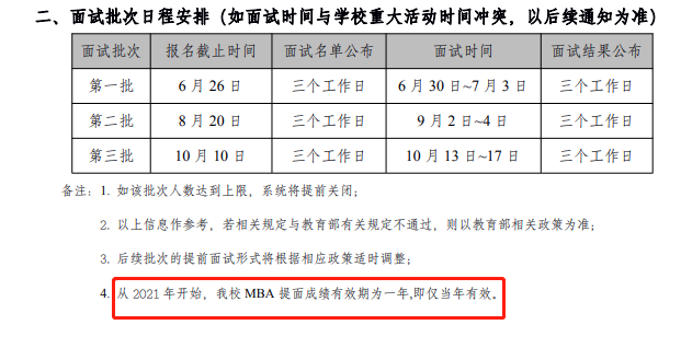 從2021年開始,我校MBA提面成績有效期為一年,即僅當(dāng)年有效。