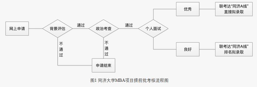 2)良好:凡第一志愿報考同濟大學(xué)MBA項目,且聯(lián)考筆試成績達(dá)到“同濟A線”,按提前批考核成績和聯(lián)考筆試成績之和所得的總成績從高分到低分排名擇優(yōu)擬錄取;