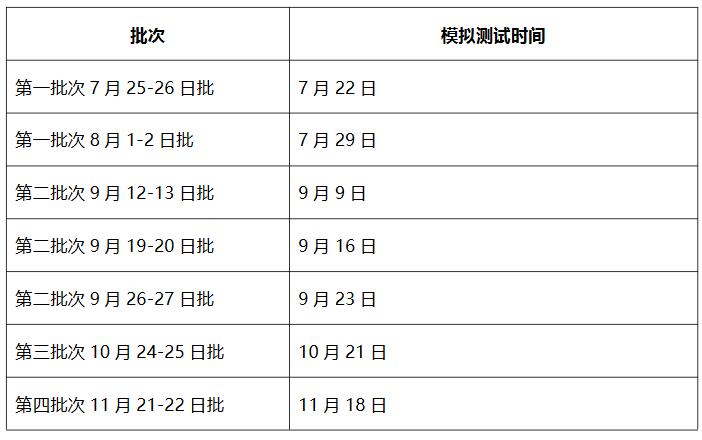 各批次預(yù)面試模擬測(cè)試時(shí)間表
