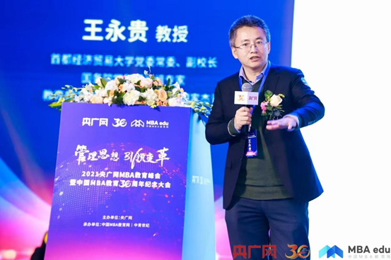 本次會議以“管理思想·引領變革”為主題,采取線上線下相結合的形式進行。三十年櫛風沐雨,三十年春華秋實,來自國內外各界領導、優秀商科院校代表、行業領軍人物、企業大咖等共此盛時、共襄盛典。會上,北京大學國家發展研究院院長、北大博雅特聘教授、北京大學中國經濟研究中心主任、北大南南合作與發展學院執行院長姚洋教授;我校黨委常委、副校長,國務院學科評議組專家、教育部工商管理教指委委員、國家杰青王永貴教授;中國人民大學商學院原院長毛基業教授;北京大學校務委員會副主任、北京大學匯豐商學院創院院長,北京大學原副校長海聞教授依次進行了主題演講。王永貴以“中國MBA項目的轉型升級之路”為題,講述了中國MBA項目的發展歷程,以及百年未有之大變局下MBA教育轉型升級的方向與路徑。