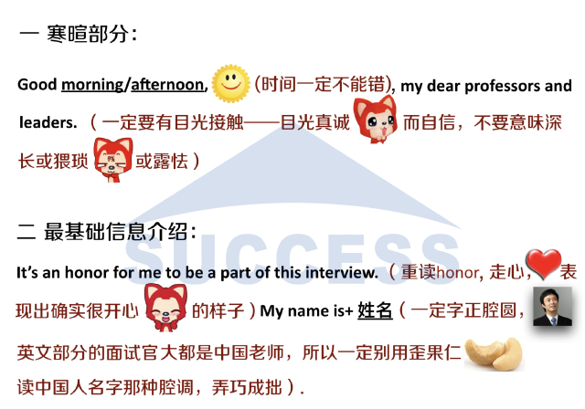 1 自我介紹無論準(zhǔn)備的多么充分、精彩,考官都不會認(rèn)為你是臨場即興而作,所以,在入場前對稿子背的12分熟練(早準(zhǔn)備,熟練到機(jī)械化程度:不需思考就能脫口而出),而在入場后以最自然、放松的方式、以和朋友分享的心態(tài)來把所背的內(nèi)容呈現(xiàn)出來是最理想的——自我介紹時,如果很明顯的在背稿子,磕磕絆絆,一個單詞被生生的掰成三個來說,眼神飄忽不定且一副蒙圈忘詞的姿態(tài),就徹底崩潰了。
