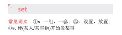 導(dǎo)讀:本期單詞set(設(shè)置,放置;一組;使),配以音頻,全方位學(xué)習(xí)