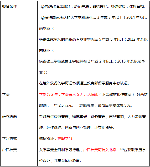 導(dǎo)讀:日前,北京物資學(xué)院MBA教育中心公布了2017年北京物資學(xué)院MBA招生簡章。2017年北京物資學(xué)院MBA學(xué)費(fèi)為5萬元,入學(xué)享受全日制學(xué)習(xí)待遇,戶口檔