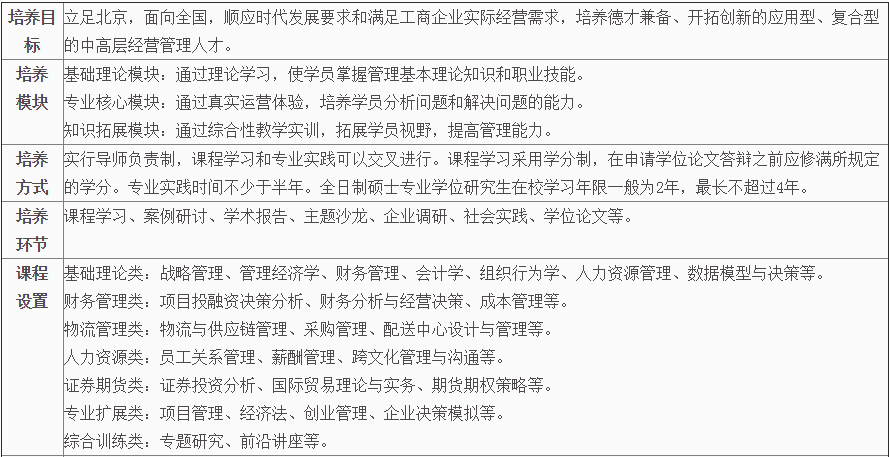 北京物資學(xué)院于2010年獲工商管理碩士(MBA)專業(yè)學(xué)位授予權(quán),學(xué)校成立了專門培養(yǎng)機(jī)構(gòu)MBA教育中心,在學(xué)校研究生部統(tǒng)一指導(dǎo)下進(jìn)行MBA專業(yè)學(xué)位教育及管理工作,以服務(wù)社會(huì),培養(yǎng)符合時(shí)代發(fā)展要求的工商企業(yè)管理精英和骨干為主要目標(biāo)。MBA的培養(yǎng)將充分發(fā)揮我校學(xué)科優(yōu)勢和特色,結(jié)合社會(huì)發(fā)展趨勢和企業(yè)實(shí)際經(jīng)營需要,側(cè)重對MBA學(xué)員進(jìn)行管理實(shí)踐與應(yīng)用方面的訓(xùn)練,培養(yǎng)學(xué)員良好的專業(yè)素養(yǎng)和職業(yè)道德,掌握堅(jiān)實(shí)的基礎(chǔ)理論知識(shí),具備寬廣的現(xiàn)代管理、經(jīng)濟(jì)及相關(guān)法律知識(shí),了解當(dāng)代中國經(jīng)濟(jì)、技術(shù)與社會(huì)發(fā)展的新趨勢和現(xiàn)代管理理論的新發(fā)展,能夠勝任工商企業(yè)和經(jīng)濟(jì)管理等部門的管理工作。